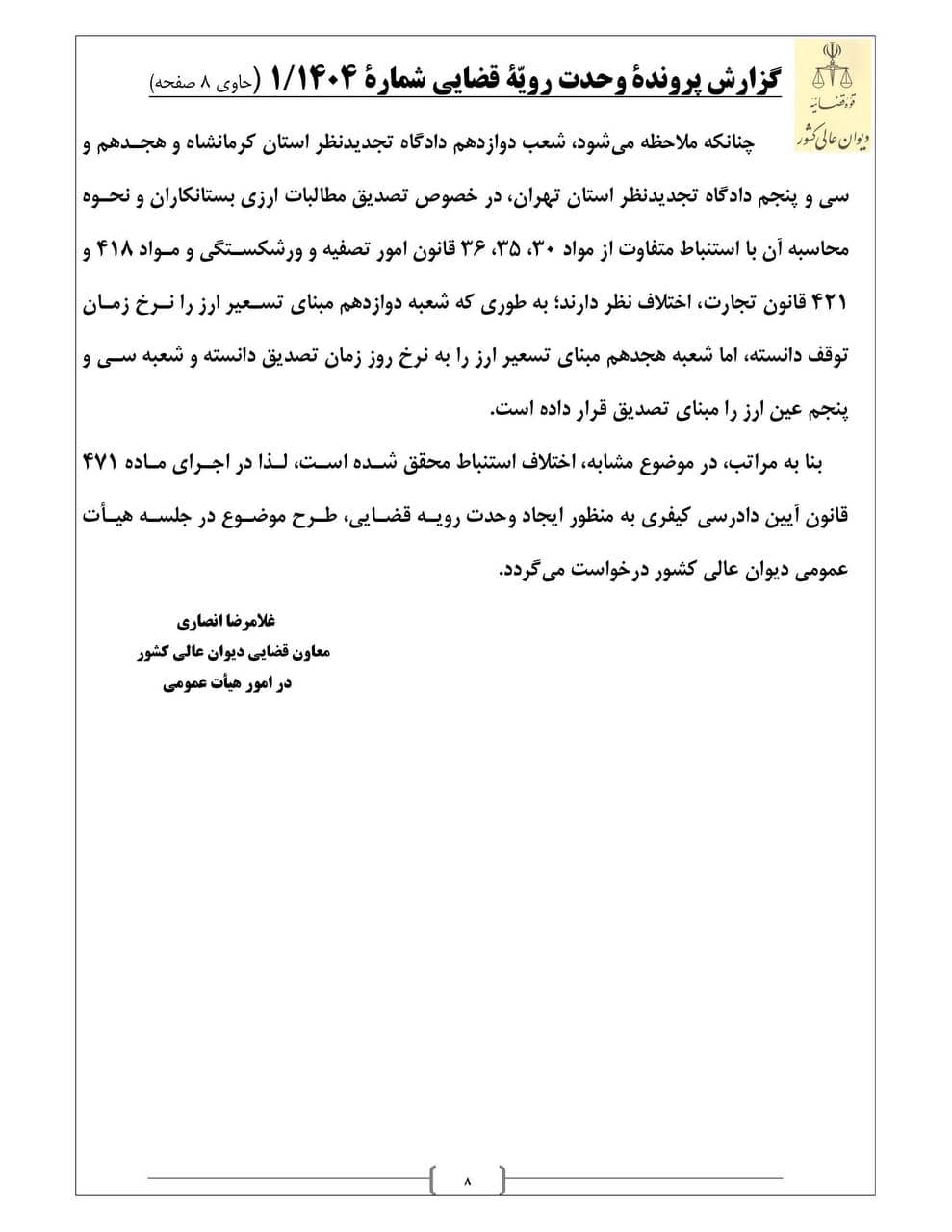 قضات دیوان عالی کشور در جلسه امروز این نهاد مورخ ۱۹ فروردین ۱۴۰۴ درخصوص تصدیق مطالبات ارزی بستانکاران ورشکسته و نحوه محاسبه آن رای وحدت رویه جدید صادر کردند.